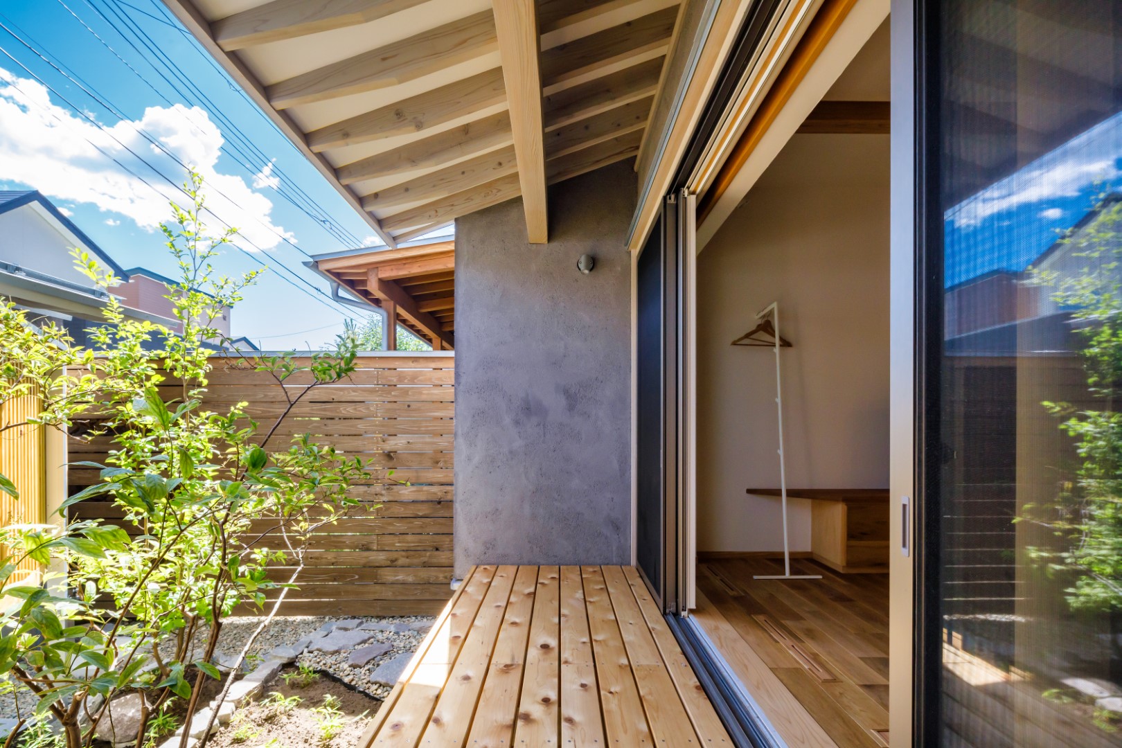 室内と外の空間がゆるやかにつながる心地よい暮らしを楽しむことができます。