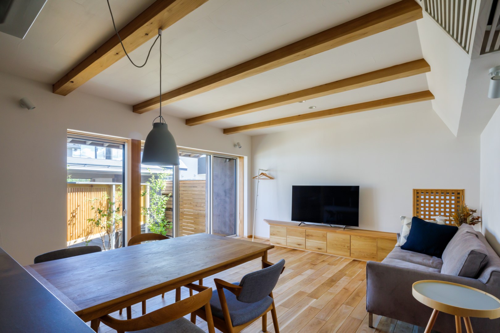 室内に入ると、梁を見せた天井が印象的なLDKが迎えてくれます。